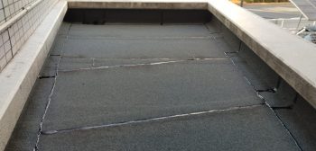 施工前、もともとアスファルトのシートの防水層です。