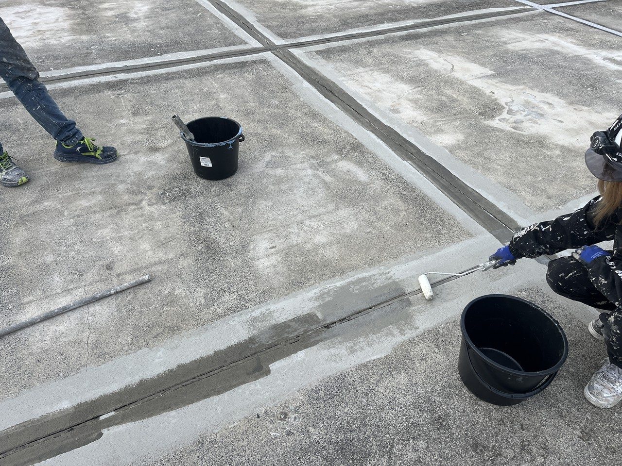 平場を樹脂モルタルで平滑にしーエッホエッホ